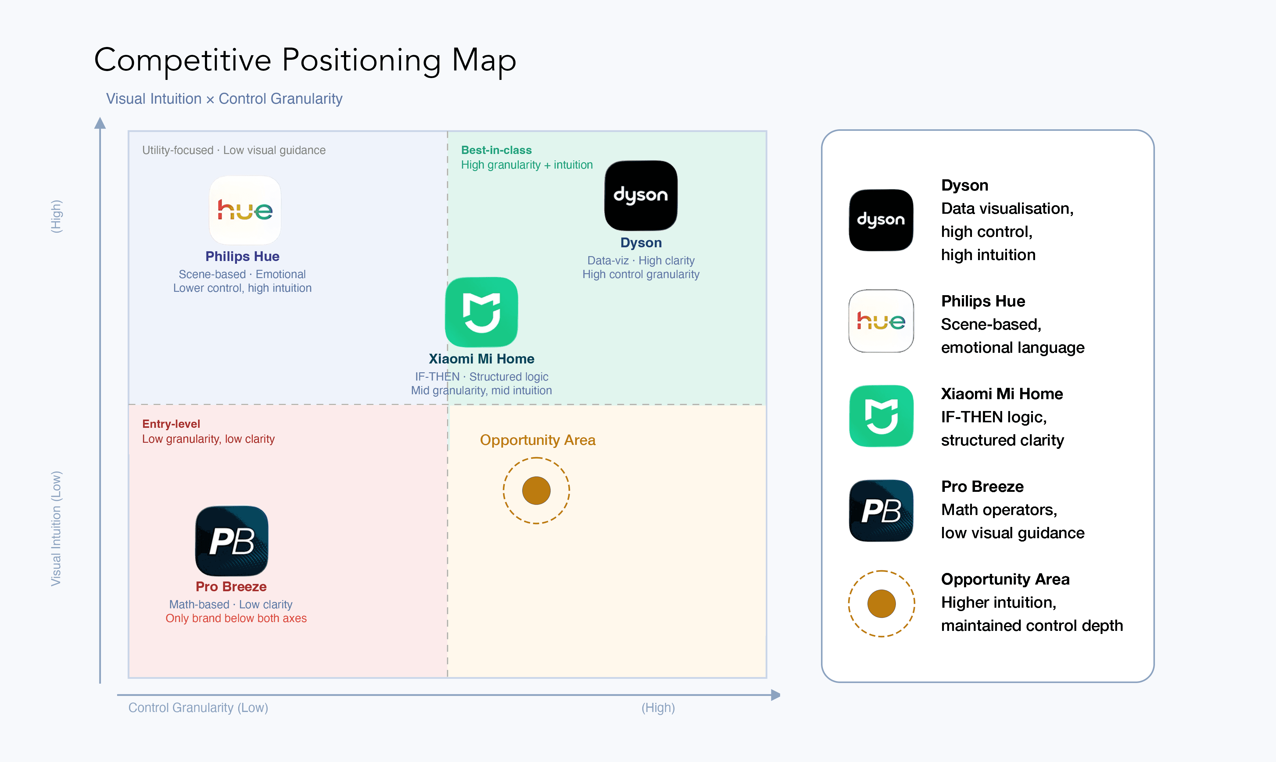 I intentionally kept my scope narrow. Rather than benchmarking broad platforms like Google Home or Samsung SmartThings, I focused on apps that are known specifically for translating complex device configurations into intuitive, everyday experiences.